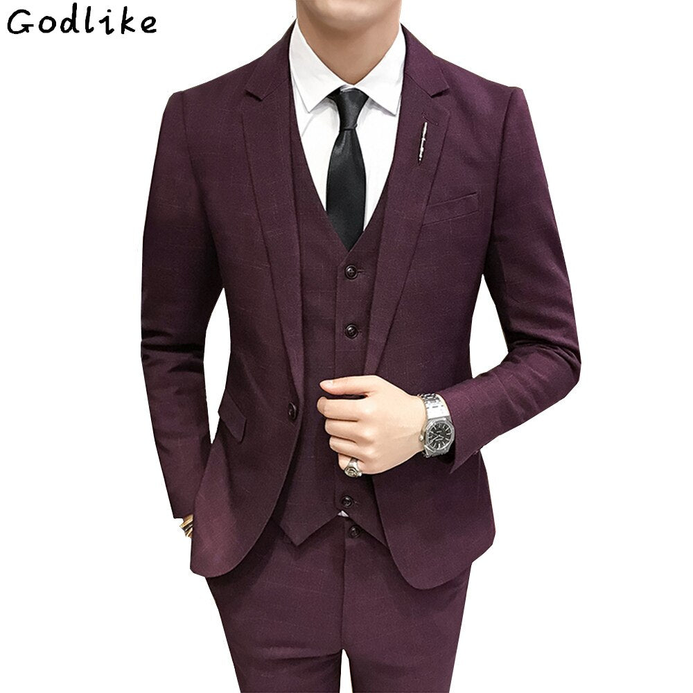 ( Jacket + Vest + Pants ) Male High-end Fashion lattice Groom groomsmen Wedding Suits Men's Casual Business Three-piece Suits
