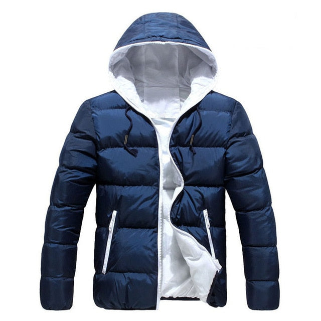 Men down coat basic Winter Warm coat Hooded Long Sleeve Zipper Pocket Coat Casual male Jacket Black+Orange