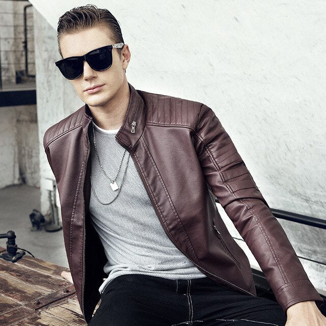 CustOmerD 2019 Autumn New Men's Casual Fashion Stand Collar Slim Leather Jacket Slim Solid Color Leather Jacket Men