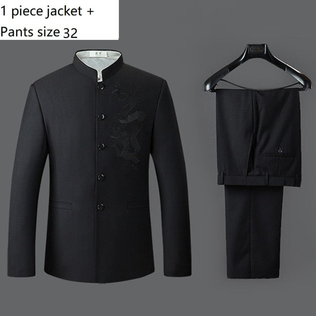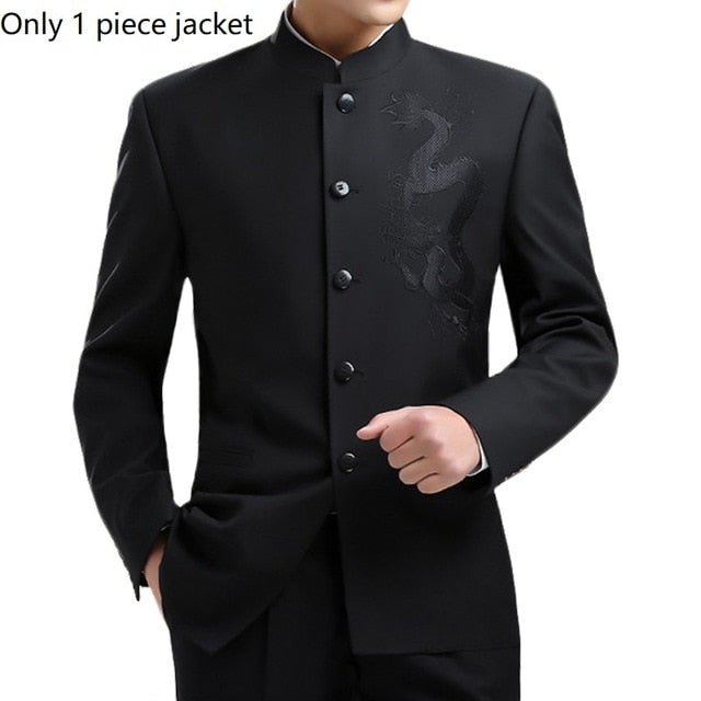 Dragon Embroidery Men Chinese Style Suit Jacket Mandarin Collar New 2019 Tunic Suit Jackets Mens Kung Fu Coat Black