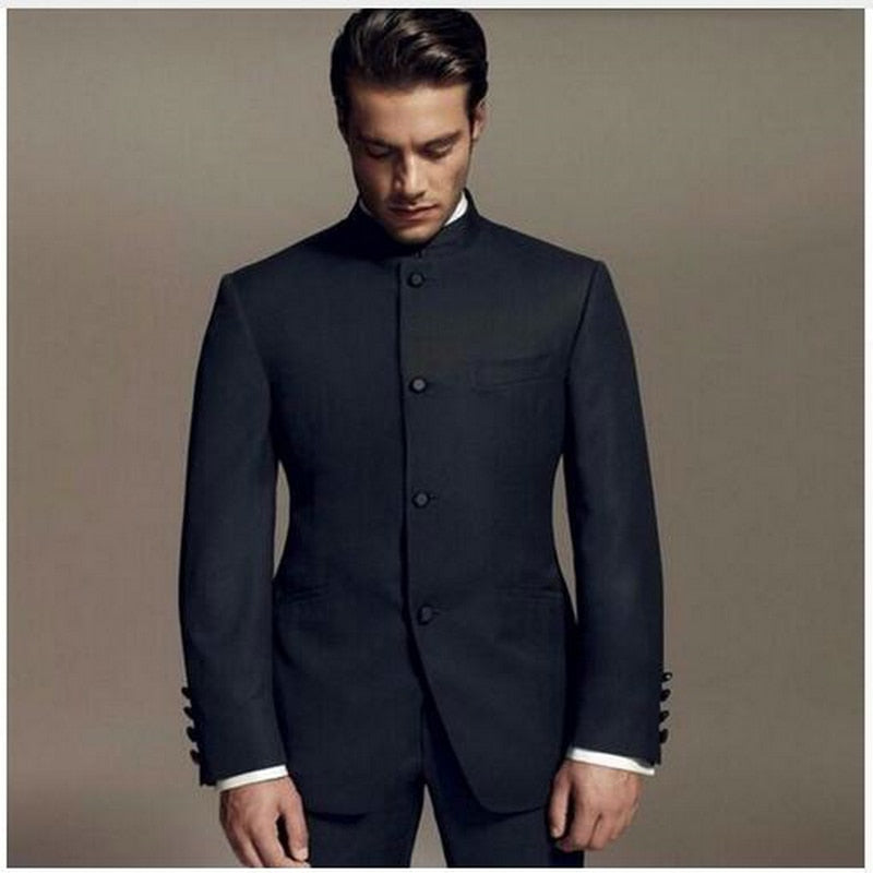 Latest Designs Bruce Lee Style Groom suits Tuxedos black Mandarin collar Men Wedding suits Dinner Suits jacket+pants