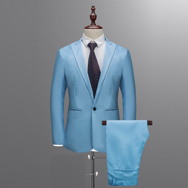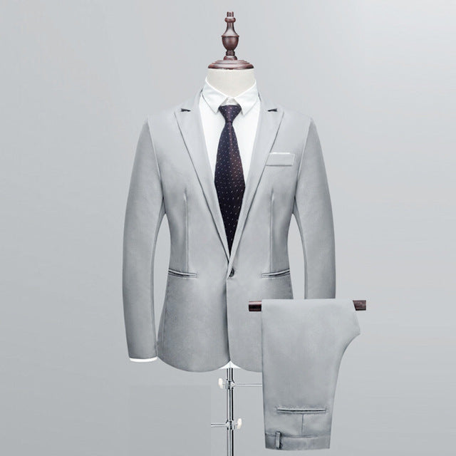 Autumn Suit Set 3XL Men's NEW Fashion Smart Casual Slim Button Suit Solid Blazer Business Wedding Host Show Coat & Pant Freeship