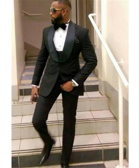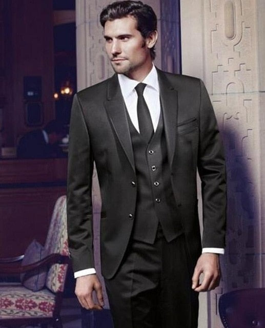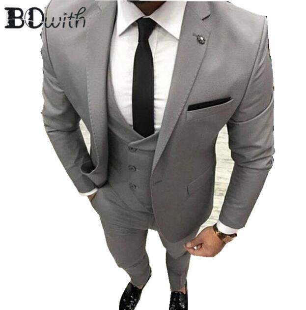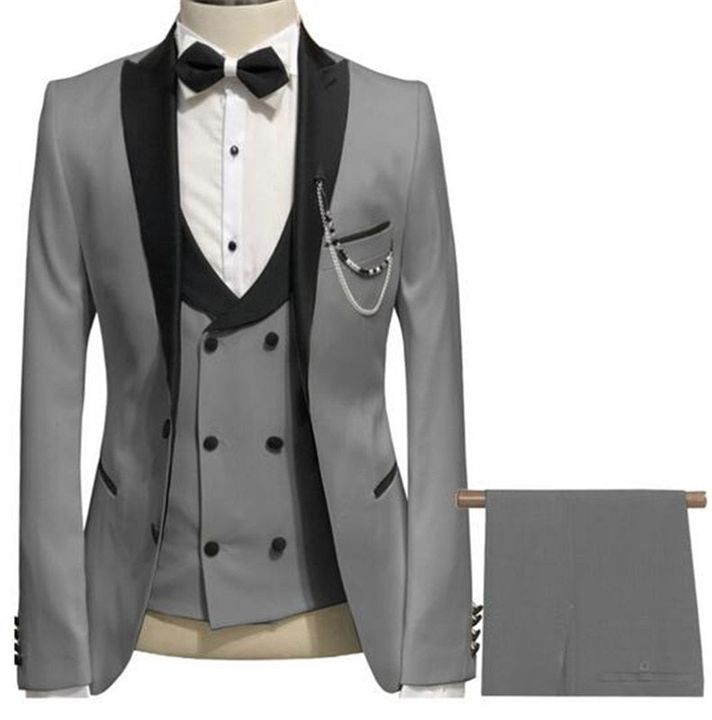 Elegant Grey Men Suit Prom Tuxedo Slim Fit 3 Piece (Jacket+Vest+Pants) Groom Wedding Suits For Men Custom Blazer