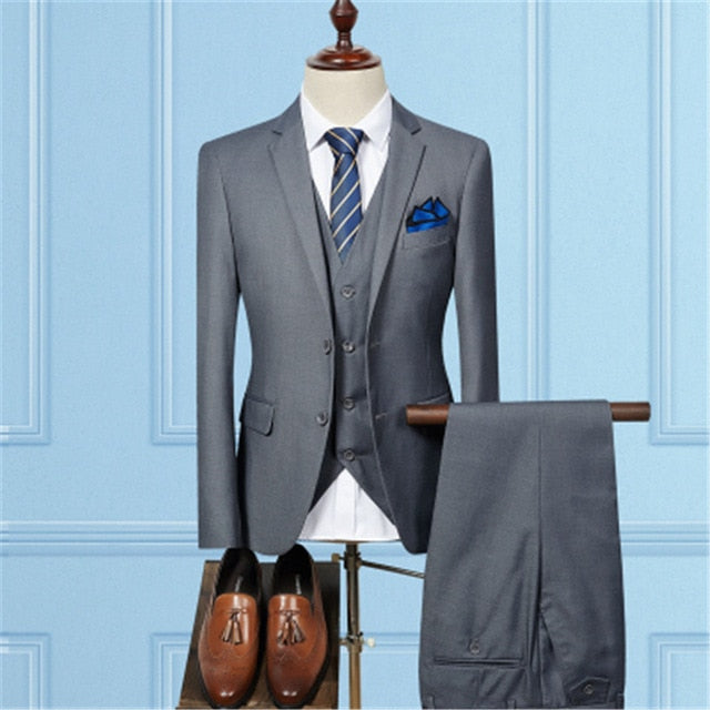Jacket Pant Vest / 2019 Fashion Men Business Suits Three Piece Sets / Men's Wedding Dress Suit Blazers Coat Trousers Waistcoat