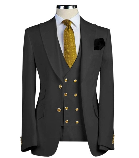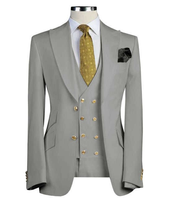 Men Suits 3 Pieces Slim Fit Business Suits Groom Army Green Noble Grey White Tuxedos for Formal Wedding suit(Blazer+Pants+Vest)
