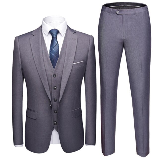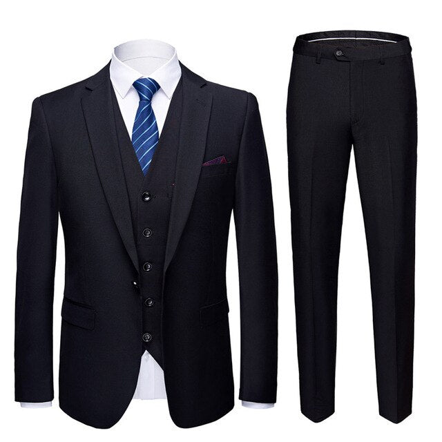 Suit Men 3 Pieces (Blazers+ Pants +Vest) Social Suit Men Fashion Solid Business Suit Set Casual Formale Suits Plus Size S-6XL